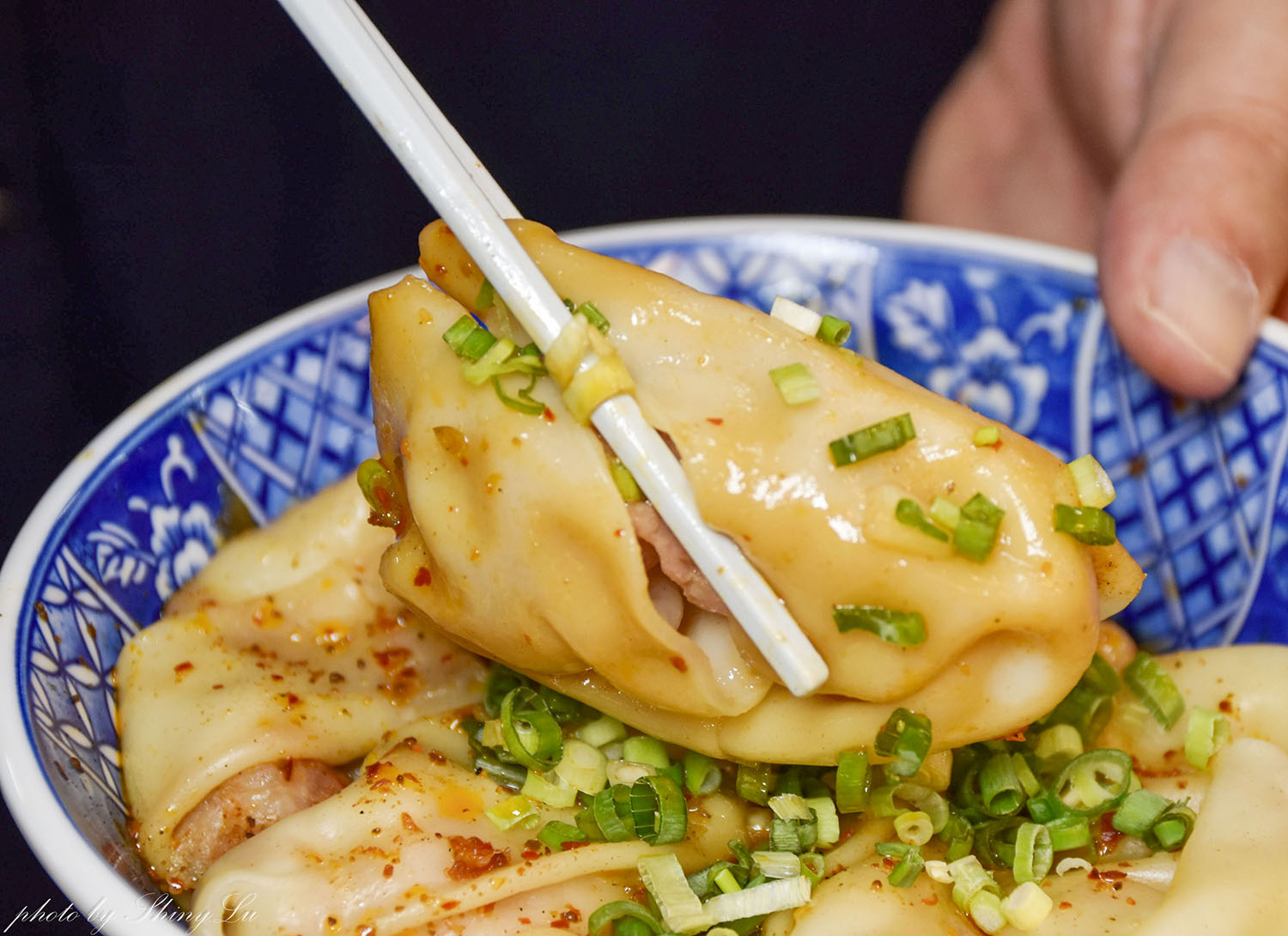 ↑鮮肉紅油炒手:皮很薄,內餡鹹香很有味道,醬料中的椒麻風味,整體風味辛香開胃