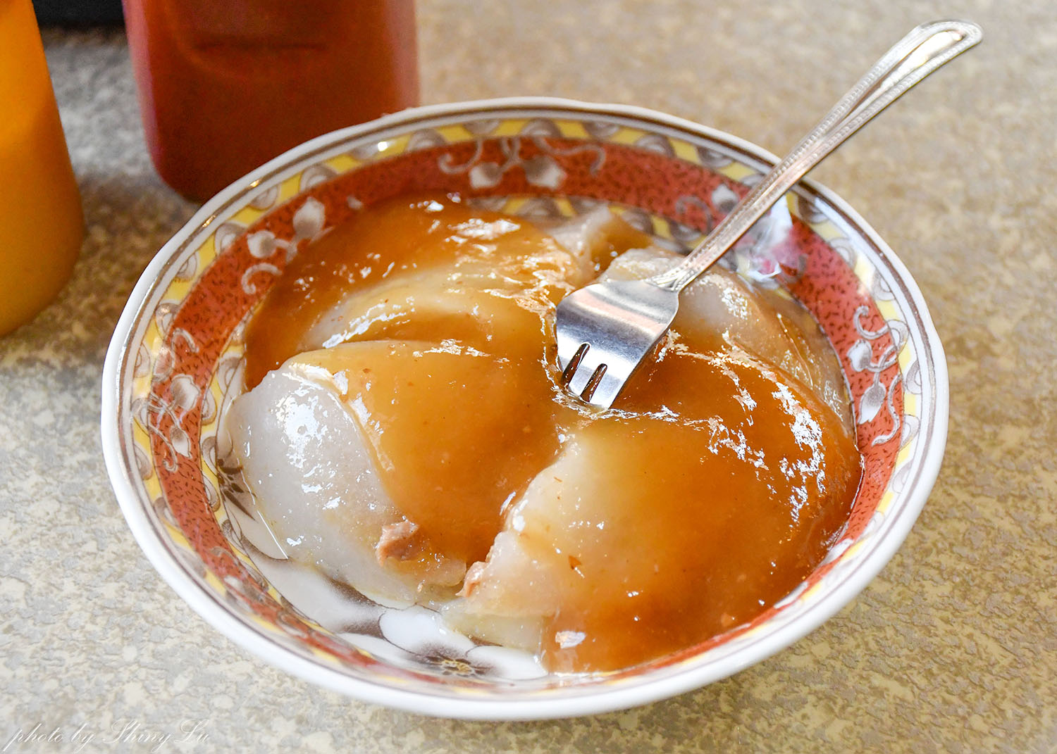 內餡有豬肉、香菇與荸薺,本身就有調味了,再加上店家的獨門醬汁更讚,鹹中帶甜、甜而不膩。肉圓的皮滑Q不會黏牙,整體下來算還不錯