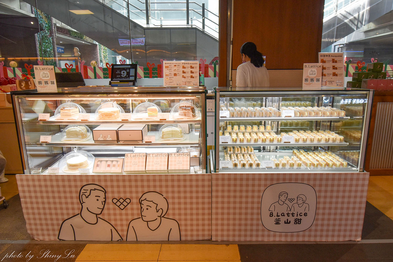 B.Lattice釜山甜, 位於B1美食區外的快閃櫃專區,是知名的韓國人氣甜點品牌,達克瓦茲細緻內餡,口感輕盈,很推薦~