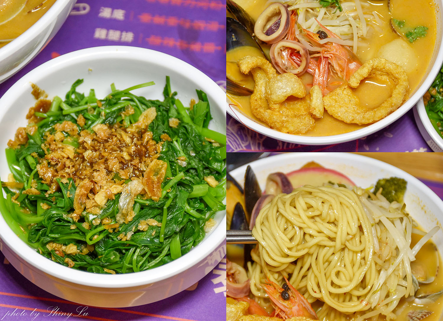 以泰式經典酸辣蝦湯為基底,搭配海鮮和麵食,湯頭溫順卻又帶有刺激的辛香