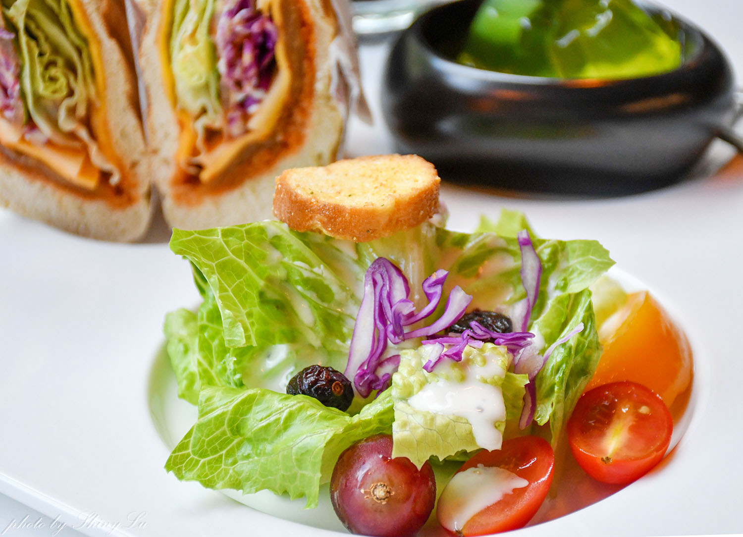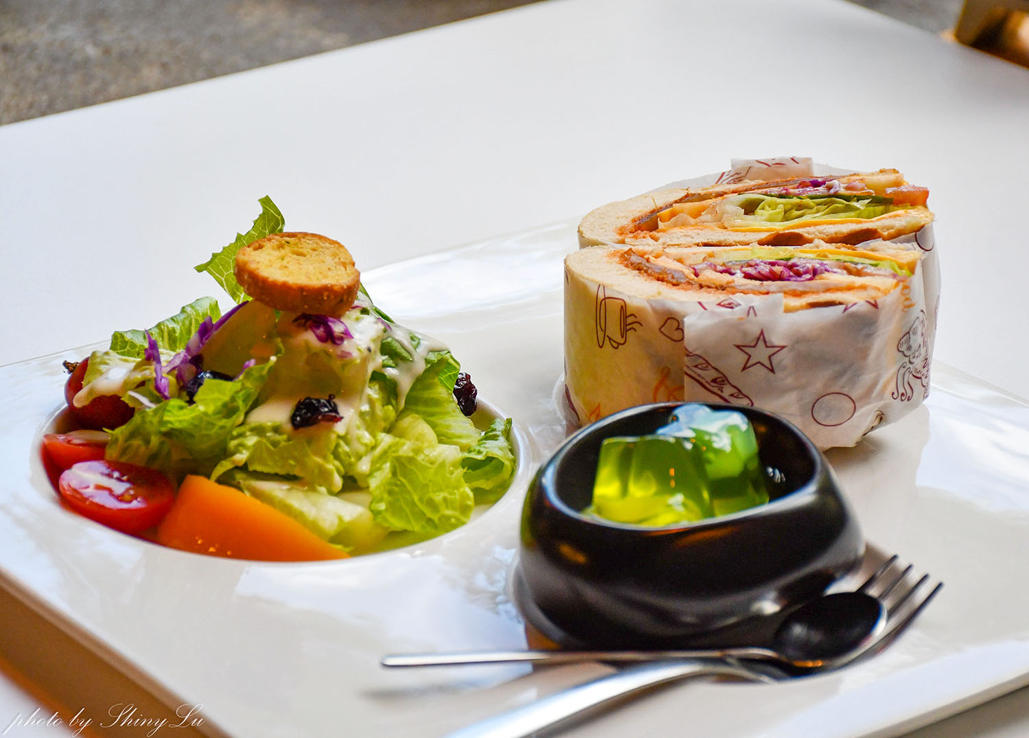 我們點了韓式泡菜起司帕尼尼,有附上一份小沙拉,茶凍