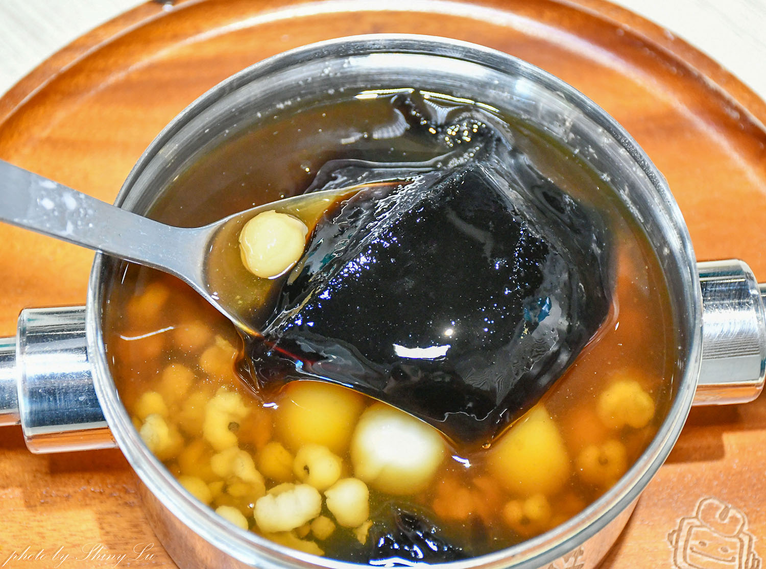 燒仙草跟別人不同,裡面是完整的仙草凍,配料有湯圓、意仁…等,天氣如果冷了,來一份真的好幸福