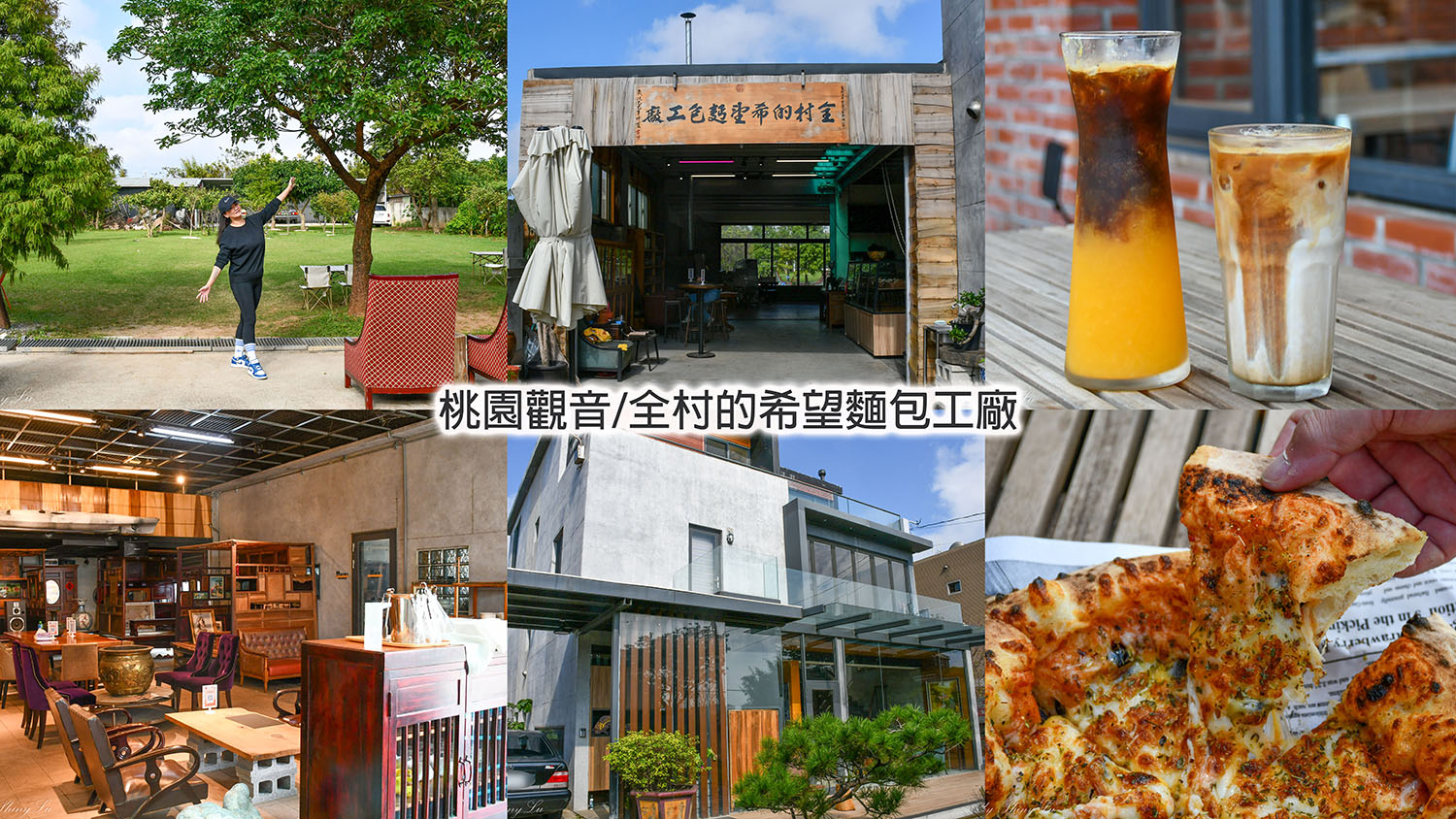 桃園觀音美食推薦!這篇開箱的《全村的希望麵包工廠》地點超隱密!隱身在觀音白千層林道600坪的豪宅裡,主控好吃的手工麵包,推薦老闆自己做的窯烤PIZZA更好吃,內用冰熱黑咖啡80元還可以續杯,而且寵物友善,有大空地可以帶寵物來跑跑,也很適合帶小朋友來玩,抬頭就可以飛機,沒有限用餐時間,想坐多久都可以