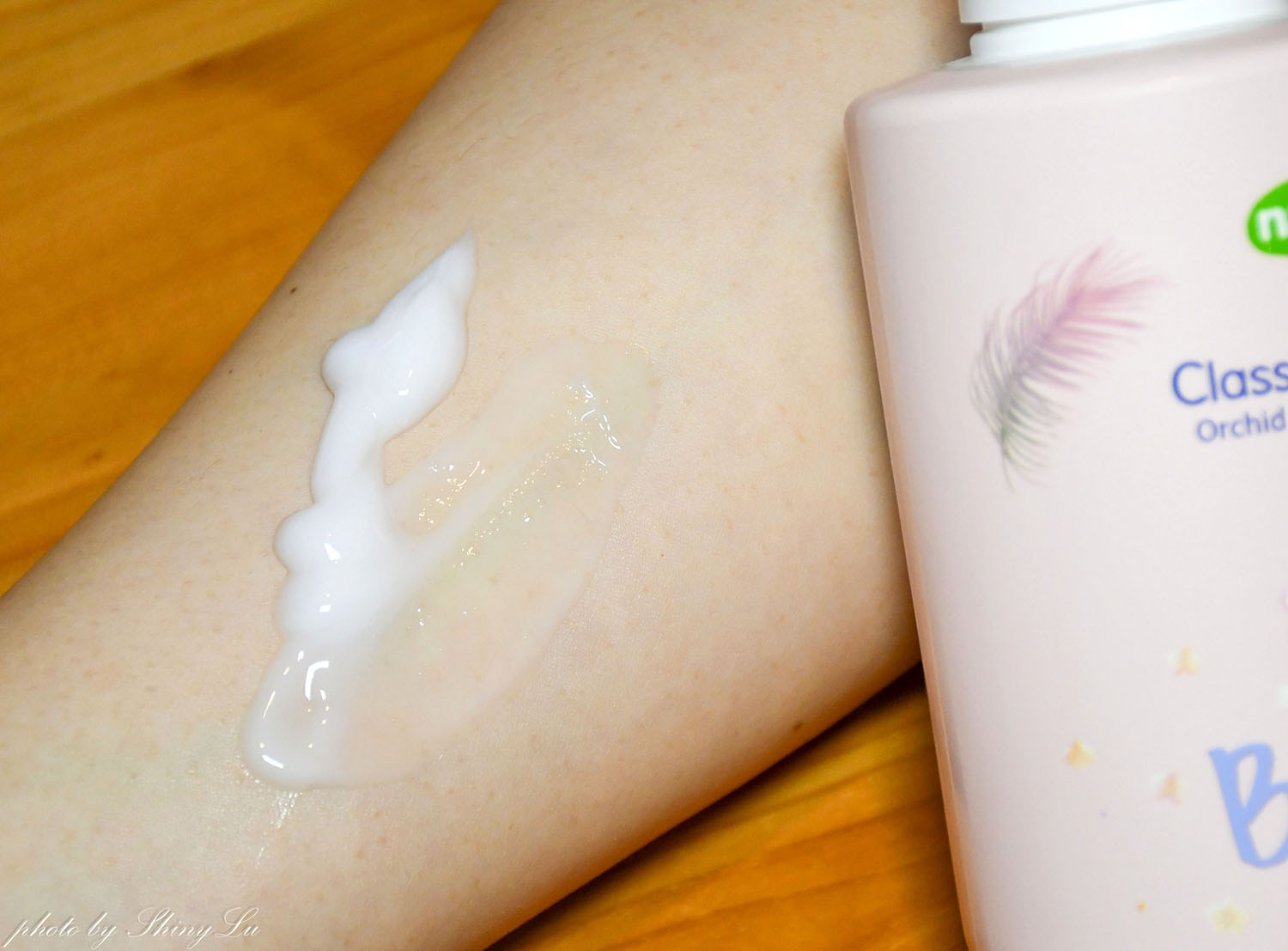 它的質地超水,滑動性高,可惜味道我覺得沒有很好聞,吸收度一般般,需要推個幾下才會吸收,要不然會覺得很黏,至於滋潤度就中規中舉。相較之下,我還是比較喜歡他們家的沐浴露,還有~女性私密處清潔也很好用