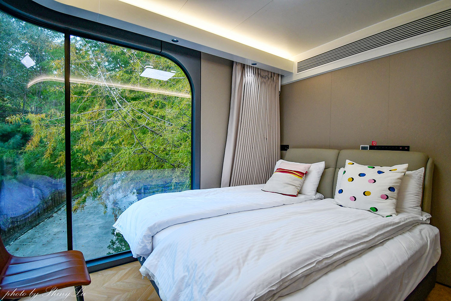 ↑先帶大家看看太空艙的主臥室,擁有大面積的落地窗,景色真的很棒,可以盡情欣賞雲海與星空,營造出被大自然包圍的獨特景色