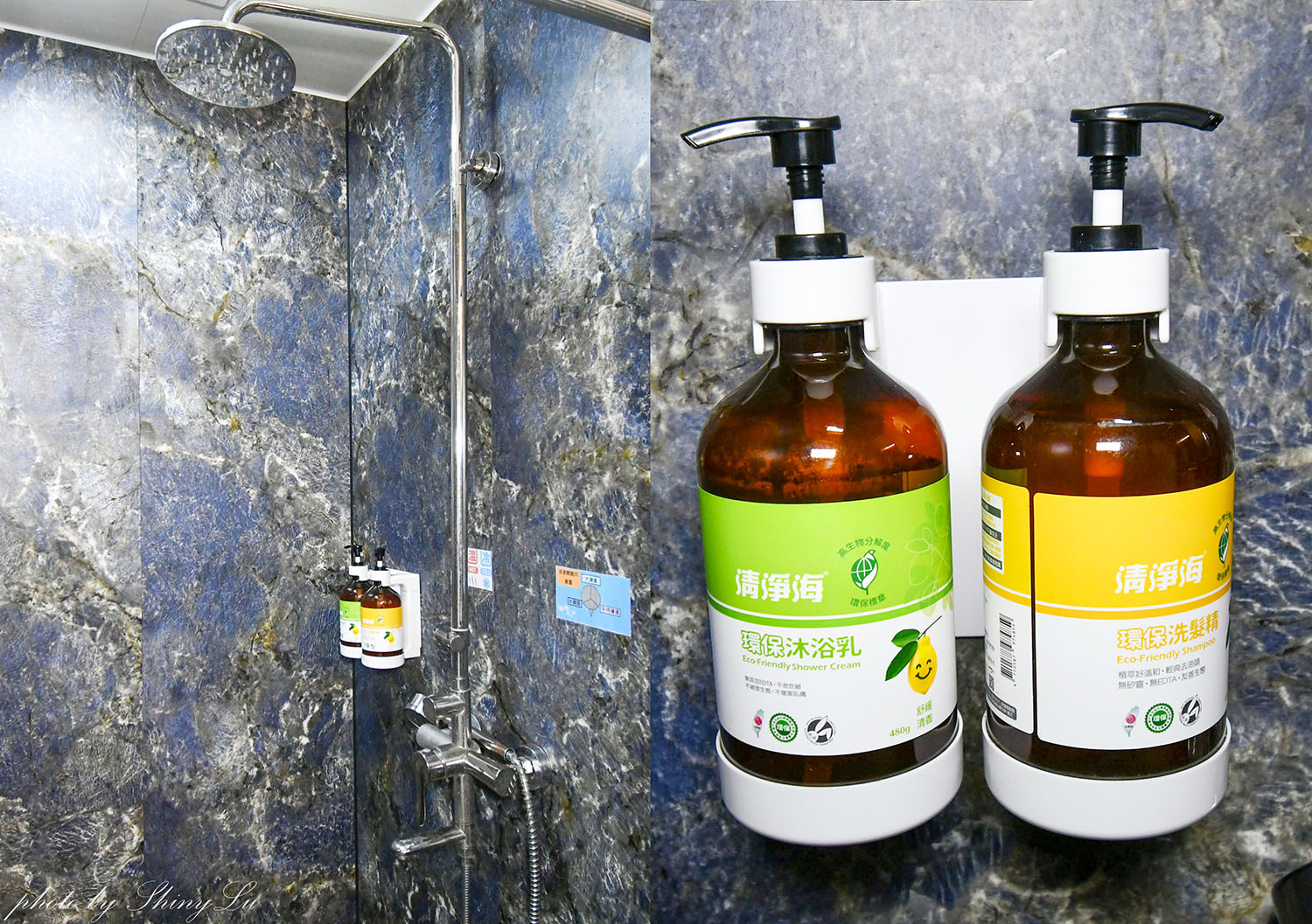 廁所跟淋浴間算是半乾濕分離設計(有用簾子隔開)淋浴間裡有沐浴乳跟洗髮精