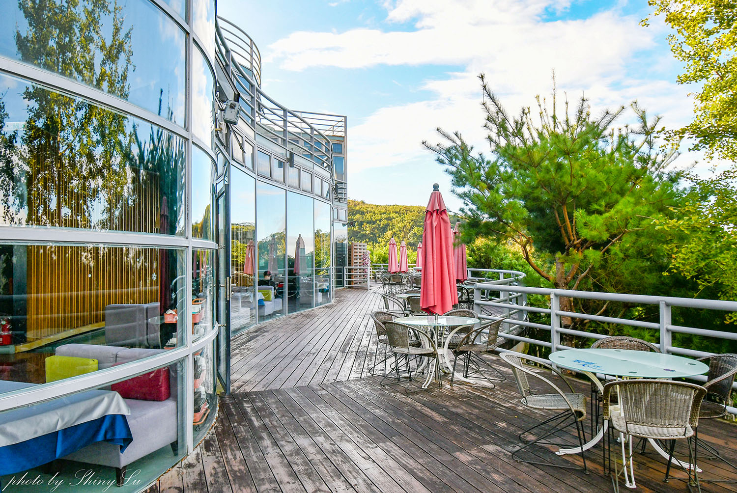 餐廳的景色超美!往上爬看到有玻璃屋為前景畫面更好看