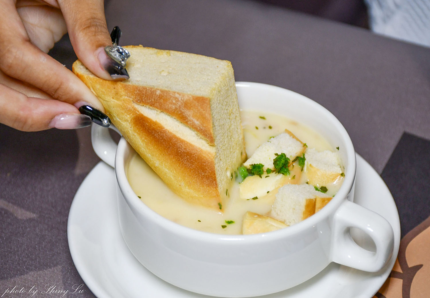 湯品濃稠度很剛好,沾麵包吃很對味