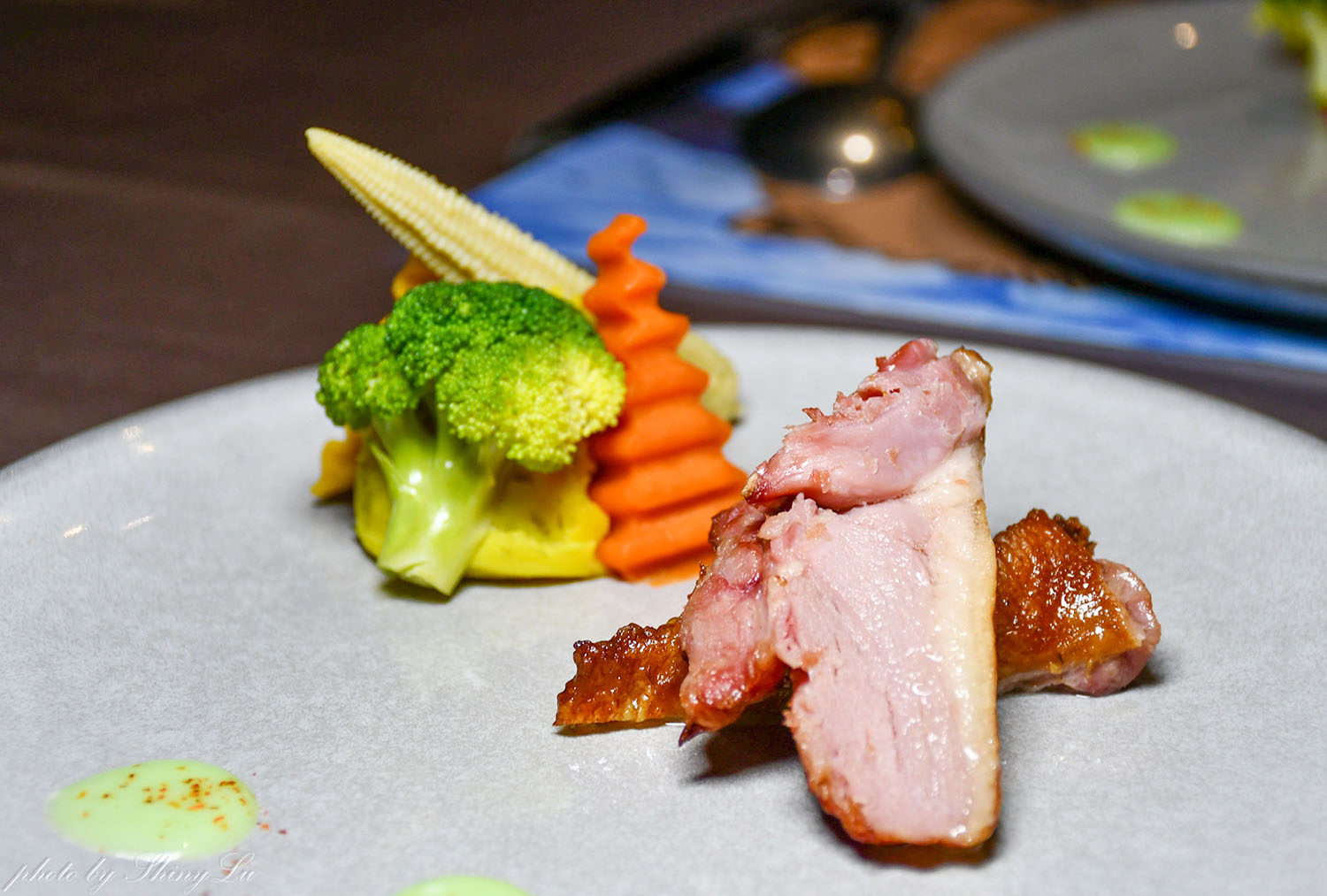 今天的主菜是煙燻鴨腿,鹹香風味,有嚼勁但不過韌