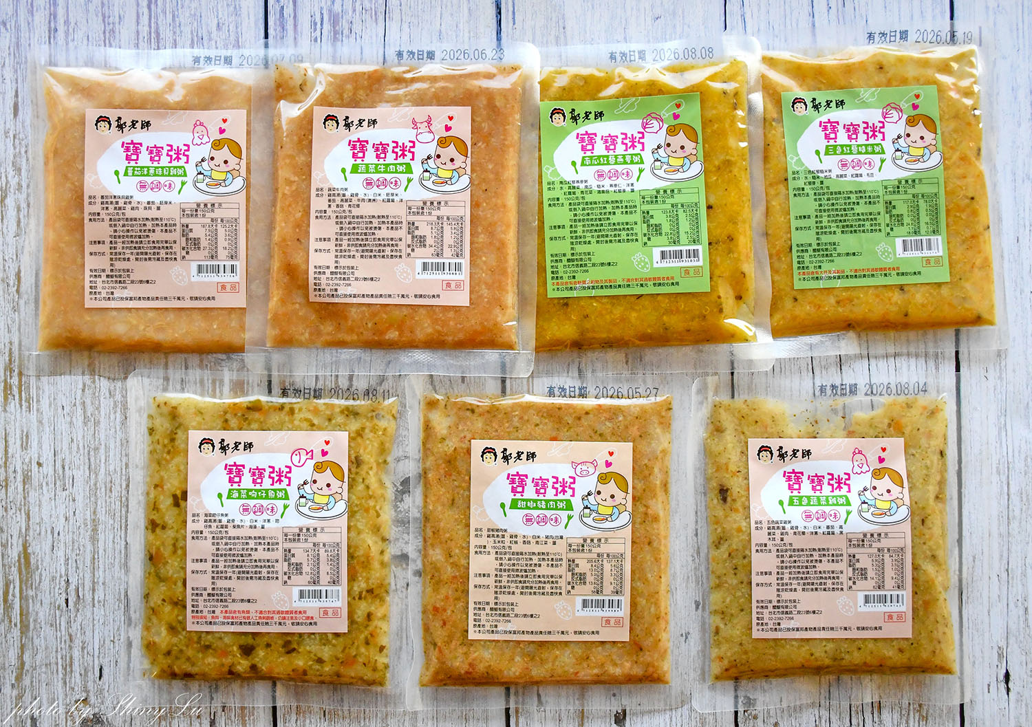 這篇開箱的郭老師常溫寶寶粥,總共有七個口味,適合8個月以上寶寶
