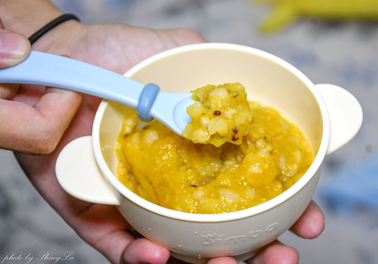 咬起包介於Q彈有嚼勁,很適合長幾顆牙的寶寶,糙米也比白米更有嚼勁,增加粥的層次感,雖說有加紅蘿蔔,但沒有不好聞的氣味